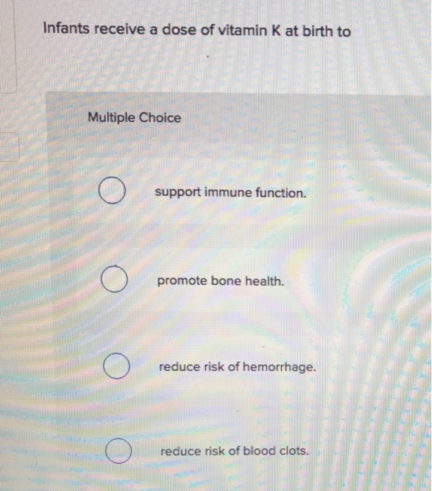 Solved Infants receive a dose of vitamin K at birth to